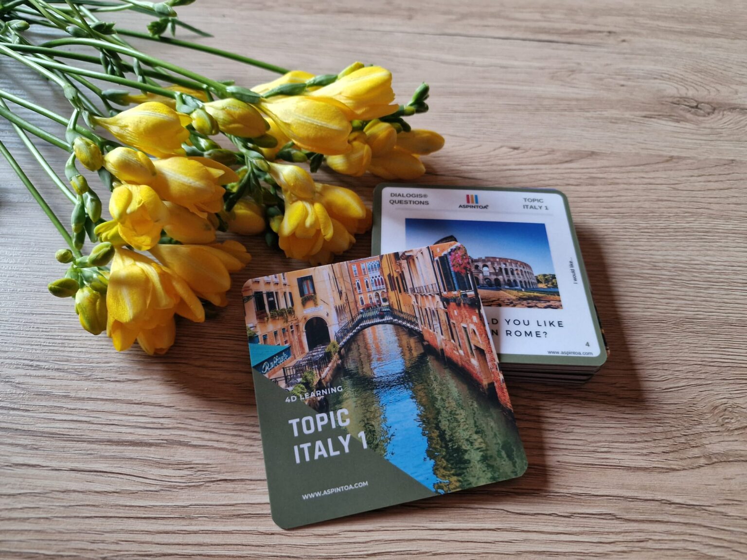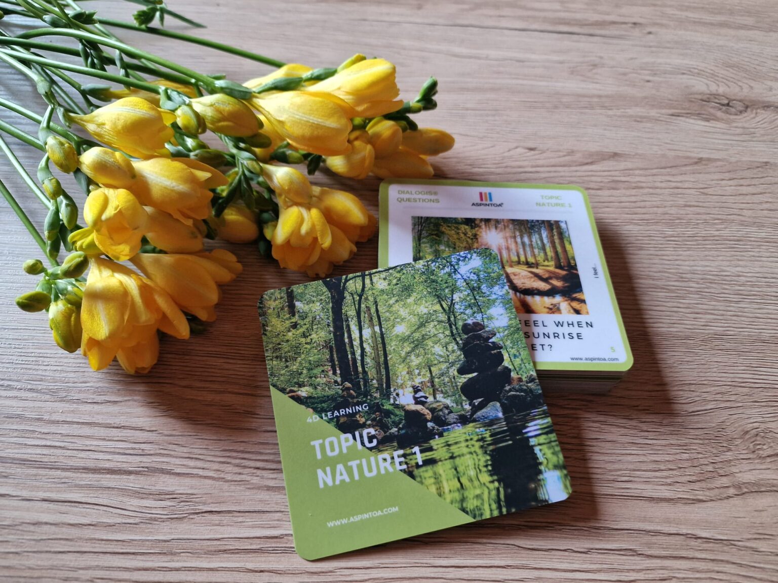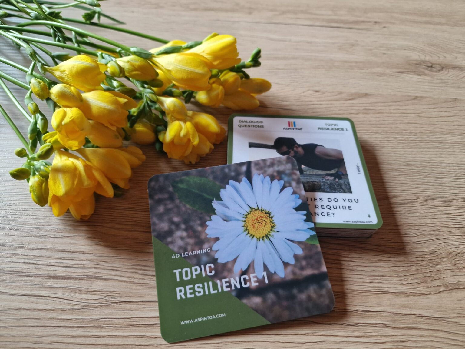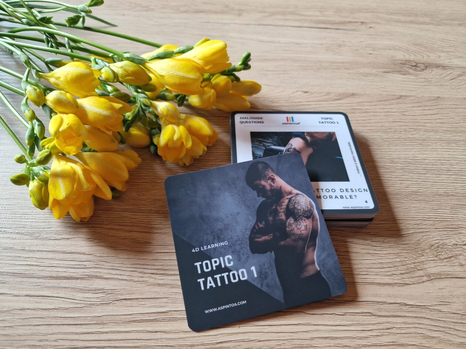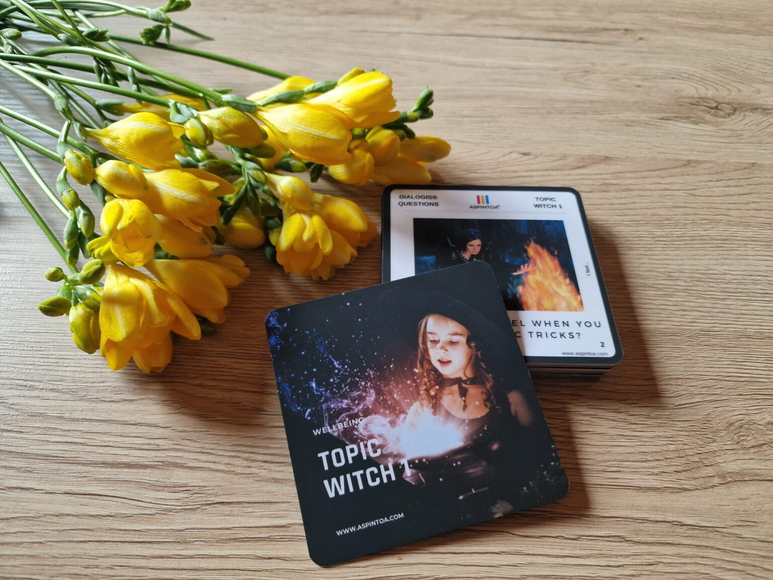 Každé podtéma má 1 oboustrannou kartu: Wordeso (rozvoj porozumění pomocí slov), Dialogis (rozvoj empatie pomocí otázek), Grammax (rozvoj kritického myšlení pomocí kvízů), Inifty (rozvoj kreativního řešení pomocí reálného problému).