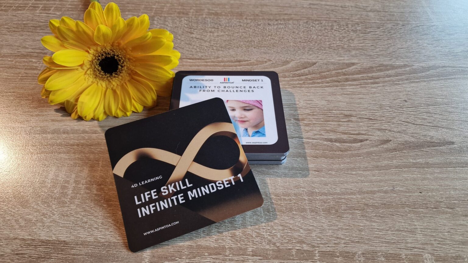 Každé podtéma má 1 oboustrannou kartu: Wordeso (rozvoj porozumění pomocí slov), Dialogis (rozvoj empatie pomocí otázek), Grammax (rozvoj kritického myšlení pomocí kvízů), Inifty (rozvoj kreativního řešení pomocí reálného problému).