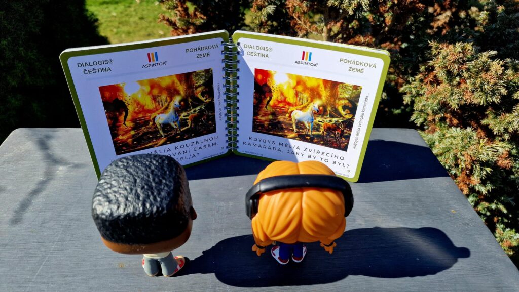 V systému ASPINTOA® nenajdete doplňování slov, křížovky ani černobílé slovníky. Místo toho najdete celé věty, otázky, obrázky a příběhy.