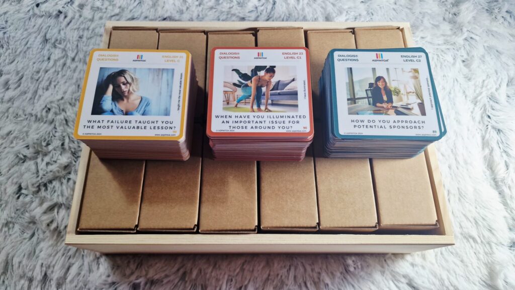 Získejte mistrovství v angličtině s DIALOGIS® C-C2, systémem navrženým pro pokročilé studenty, kteří chtějí ovládnout angličtinu na úrovni C1 a C2. Tento systém obsahuje 9 metodických boxů, každý s 90 kartami a 180 stranami, zaměřenými na náročné dialogy, které vás připraví na složité a odborné konverzace. S DIALOGIS® C-C2 se stanete experty v používání angličtiny ve vysoce profesionálních a akademických situacích.