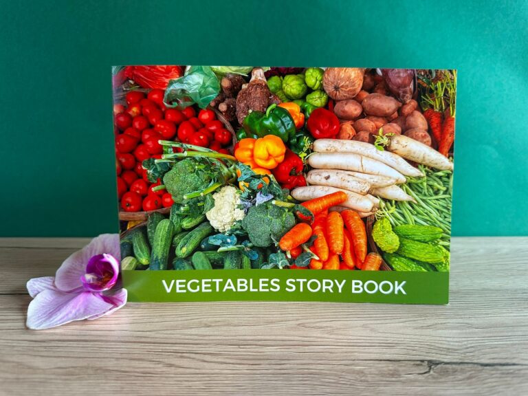 VEGETABLES STORY BOOK connects language, images, and the discovery of nature’s colors and flavors.