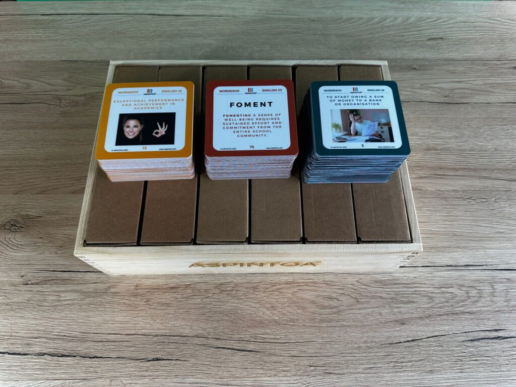 Získejte přístup k nejpokročilejšímu systému pro rozvoj anglické slovní zásoby s WORDESO® C-C2. Tento systém je navržen pro studenty, kteří chtějí dosáhnout excelence v angličtině na úrovni C1 a C2. Obsahuje 9 metodických boxů, každý s 90 kartami a 180 stranami, které kombinují obrázky, věty a slova s jejich významem. Tento komplexní přístup vám umožní zdokonalit nejen slovní zásobu, ale i schopnost používat jazyk v různých komplexních a odborných situacích.